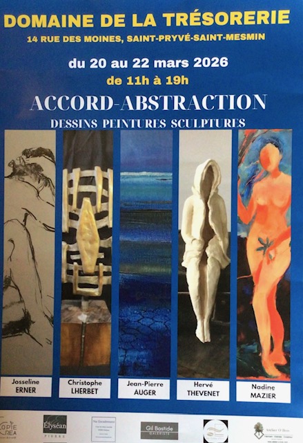 « Atmosphères mystérieuses » pour les œuvres colorées de Jean-Pierre Auger ; « D’un trait » pour les dessins sur le vif de Josseline Erner ; « Tableaux détournés » pleins d’énergie de Nadine Mazier ; « De l’autre côté du miroir » sujets en bronze ou en alu inspirés de l’art tribal avec Christophe Lherbet ; et « Regards sur l’humanité » du sculpteur Hervé Thévenet et ses personnages en grès patiné.