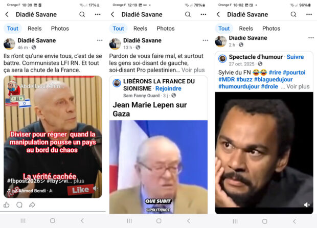 Alain Soral, Jean-Marie Le Pen et Dieudonné, les trois hypostases de la Trinité selon Diadié Savane, candidat aux élections municipales à Châlette-sur-Loing (Loiret) – captures d’écran de son compte FB