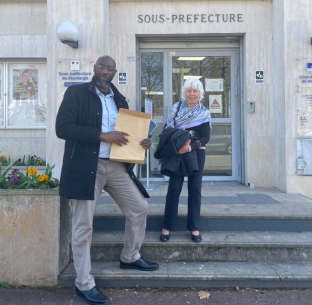 Diadié Savane et Annette Morand devant la sous-préfecture de Montargis lors du dépôt de leur liste – capture d’écran FB du 25 février 2526.