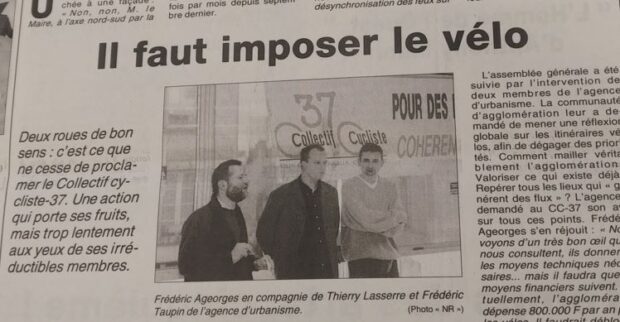 En 1995, le sujet reste présent, la problématique des parkings sauvages est désignée par la NR comme pourrissant la qualité de vie des habitants alors que le Collectif Cycliste 37 organise des actions et interroge les candidats pour évaluer leurs propositions. Jean Germain est d’ailleurs jugé bien trop mou sur ces questions mais le PCF qui présente une liste autonome se saisit de la thématique, proposant un « plan vélo » et le développement de « l’étoile ferroviaire » afin d’améliorer les transports en commun et la connexion aux autres villes du département, projet baptisé 30 ans plus tard « RER métropolitain » par Emmanuel Denis.