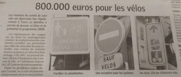 On se souvient, en tout cas pour les plus courageux spectateurs des conseils municipaux ces dernières années, des systématiques et longuissimes interventions des quatre groupes d’opposition de droite au sujet du plan de circulation à Tours dit « plan d’apaisement ». « Ville interdite aux voitures », totalitarisme cyclo-porté, « trottinettes folles », vélo-rues qui rappellent les heures les plus sombres de notre histoire, pont-martyr, bouchons automobiles visibles depuis l’espace, hécatombe des places de parking, plots en béton et sens interdits qui pleuvent par milliers. Aucun superlatif n’aura été épargné. Oui mais…