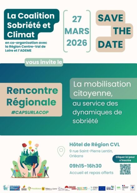 La Coalition Sobriété et Climat, en partenariat avec la Région Centre-Val de Loire et l‘ADEME, organise une Rencontre Régionale dédiée à la Mobilisation Citoyenne et son soutien aux dynamiques de sobriété.