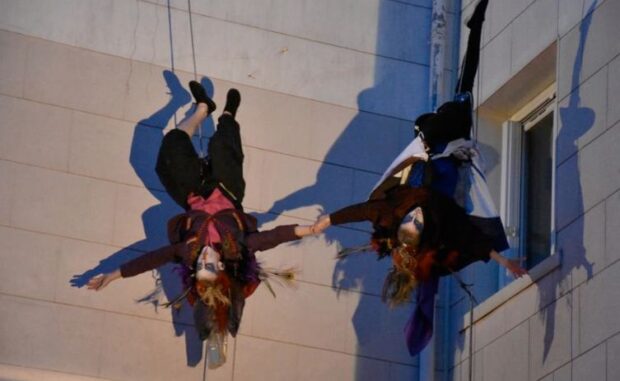 Quand le spectacle joue avec les hauteurs et transforme l’immeuble en scène verticale – photo Arbre Compagnie
