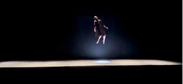 Et Max, le bavard incontrôlable, fait le lien entre la folie et le reste, les autres, qui croient ce qu’ils voient. Nous, spectateurs, donc. Alors qu’on voit sur la scène des choses incroyables. On les voit, c’est sûr. Madeleine ne touche plus vraiment terre, elle danse dans les airs. C’est la magie du théâtre, la lumière qui sélectionne des zones bien précises, la profondeur du plateau qui permet différentes strates. Le jeu des images projetées devant, derrière, autour. Mais quand même, c’est incroyable, ce que l’on voit, mais on le voit, assurément. Doit-on le croire ?