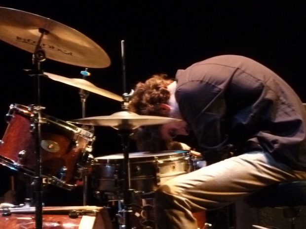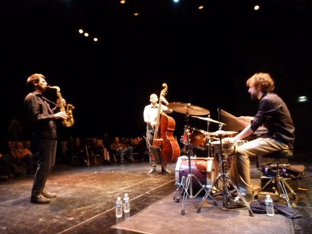 Et ce dernier jour ne déçut pas avec, en plus de la Rencontre Improvisée quotidienne, un concert intitulé Vocuhila du décoiffant trio tourangeaux Collectif Capsul formé de trois musiciens véritablement habités par leurs instruments: Maxime Bobo, Saxo, Jean Jacques Goichon, Contrebasse, et Etienne Zemmiack batteur qui nous offrit un solo de batterie d’anthologie dont voici un court extrait: