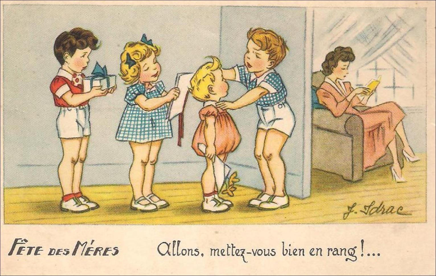 Cette fête oubliée revient en France et en Europe par les Etats-Unis Les Américains qui avaient institué un « Mothers Day » le deuxième dimanche de mai à la fin du XIXème siècle, le développent en raison de l’éloignement parents enfants lors de la première guerre mondiale. Les facteurs français constatent à cette date un afflux de courrier et font remonter l’information à leur hiérarchie. La France ayant également sérieusement besoin de se repeupler à la suite de la guerre de 14-18 s’inspire de l’Amérique et institue la « Fête des mères » qui met plusieurs années à entrer dans les mœurs. Il faut attendre 1928 et la décision du gouvernement d’alors d’instituer « une journée des mères ». En 1942, le maréchal Pétain lui donne un tour plus solennel, notamment dans un message à la radio : « Vous seules, savez donner à tous ce goût du travail, ce sens de la discipline, de la modestie, du respect qui font les hommes sains et les peuples forts », dit-il. Il s’agit en fait de relancer la natalité qui s’est effondrée en raison de la guerre.