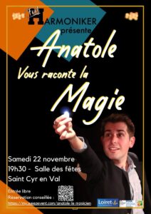Après avoir conquis les salles parisiennes et séduit le public partout en France, Anatole le Magicien pose ses valises à Saint-Cyr-en-Val, le 22 novembre prochain.