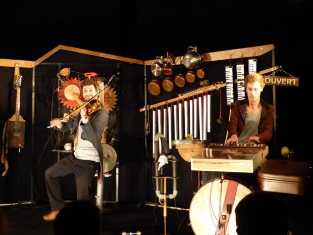 Dans un cabaret de bric, ou un concert de broc, Octave et Domi partagent leur vision sensible sur le monde, avec humour des objets et amour des mots (à moins que ce ne soit l’inverse). Un spectacle qui hume le café frais et qui sent la mécanique méta-empirique.
