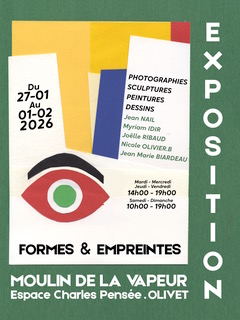 Du mardi 27 Janvier 2026 au dimanche 1er Février, l’espace lumineux du Moulin de la vapeur, à Olivet, ouvre ses portes, pour une exposition « Formes et empreintes »