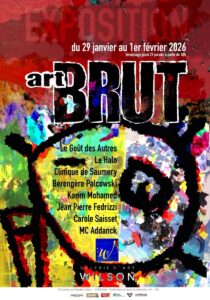 La Galerie Wilson, 23 Avenue du Président Wilson, Blois, organise du jeudi 29 janvier 2026 au dimanche 1er février 2026 une exposition consacrée à l’Art Brut. Artistes : Le Goût des Autres, Le Halo, Clinique de Saumery, Bérengère Palcowski, Karim Mohamed, Jean-Pierre Fredizzi, Carole Saisset, MC Addanck.