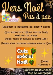 Que diriez-vous d’une soirée ludique en famille ou entre amis ? Prenez votre téléphone portable pour le quiz… Cette soirée est animée par les jeunes de l’Église protestante unie d’Orléans.