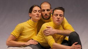 Avec humour et bizarrerie, le chorégraphe et ses deux complices donnent vie à un trio captivant où ventriloquie et danse dialoguent imperceptiblement.