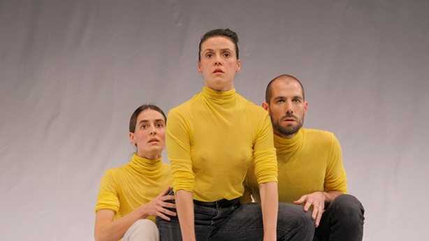 Lorsque l’on se glisse dans la salle, Joachim Maudet, Pauline Bigot et Sophie Lèbre nous attendent déjà, immobiles : regard fixe et visage imperturbable. La tension est aussi palpable que la maîtrise sera impeccable ! Habillés à l’identique, seul leur col roulé jaune contraste avec le décor blanc immaculé. Tour à tour, ils s’éveillent, alternant entre pause façon slow motion et gestuelle transie de spasmes.. On semble observer des corps sans voix et des voix sans corps. Parce que oui, ces trois-là ont un pouvoir invisible. Ventriloques, leurs voix se dissocient de leurs êtres comme sorties de nulle part. Des langues parfois rebelles qui s’agitent, non sans esprit, et libèrent des paroles intérieures, encore jamais dites ou pas ainsi… Avec ces corps dissociés, WELCOME montre la nécessité de se rassembler, d’aller vers l’autre et de faire communauté.